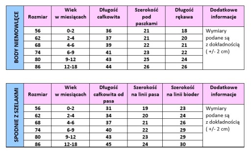 Przed zakupem proszę zapoznać się z tabelą rozmiarów - to pomoże w wyborze odpowiedniego produktu