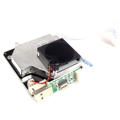 Moduł laserowego czujnika jakości powietrza i stężenia pyłu PM2.5 i PM10. Charakteryzuje się rozdzielczością pomiaru 0.3μg/m3, posiada wbudowany wentylator zasysający powietrze do środka a komunikuje się za pomocą interfejsu UART lub wyjścia PWM. Czujnik działa stabilnie, a czas odpowiedzi wynosi mniej niż 10 sekund.