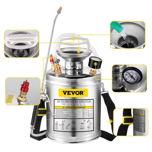 Ten ręczny opryskiwacz z pompką jest wykonany z trwałego materiału ze stali nierdzewnej, odpornego na rdzę do długotrwałego użytkowania. A pojemność 1 gal jest wystarczająco duża, aby spełnić Twoje potrzeby.