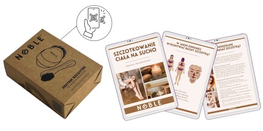 Instrukcja jak używać szczotki i masować ciało na sucho dostępna za pomocą telefonu - zeskanuj kod QR na opakowaniu szczotki i pobierz darmowy przewodnik.