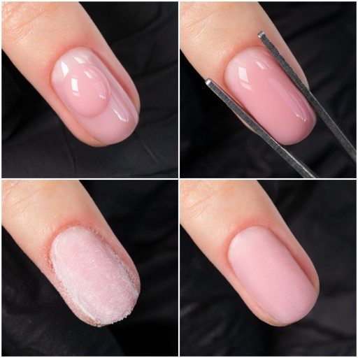Doskonale maskuje niedoskonałości na płytce paznokcia, nadając efekt naturalnego kamuflażu w stylu 'nude'. Stylizację wystraczy pokryć topem, bez potrzeby nakładania hybrydy.