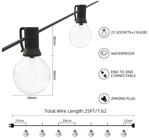 ✔ 25 ŻARÓWEK G40 I 7,6 M DŁUGOŚCI