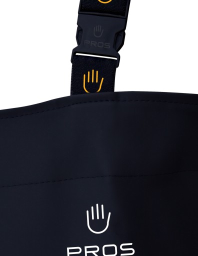 Spodniobuty z wgrzanymi na stałe wysokiej jakości kaloszami. Model produkowany z wodoochronnego, wytrzymałego materiału, zapewniającego skuteczną ochronę przed wodą. Technika obustronnego zgrzewania zwiększa wytrzymałość szwów. Kieszeń wewnętrzna ułatwia przechowywanie dokumentów. Komfort użytkowania produktu poprawiają regulowane szelki z szerokiej gumy.