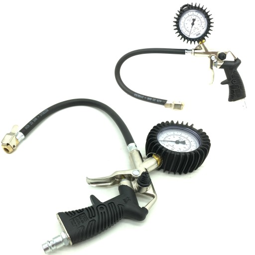 Pistolet pneumatyczny do pompowania kół wyposażony w czytelny manometr 10 bar