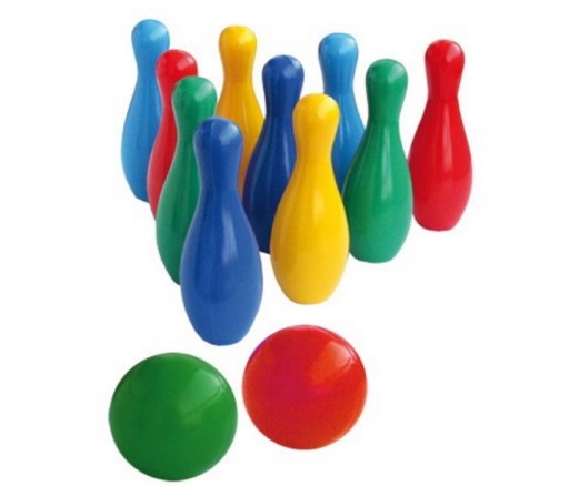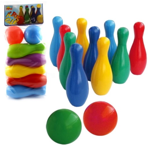 Różnokolorowe kręgle wykonane są z plastiku, co sprawia że są bardzo lekkie, łatwe do ustawienia i strącenia przez dziecko.