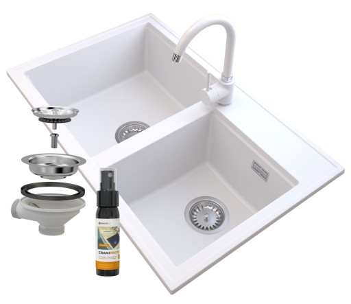 ГРАНИТНАЯ МОЙКА, БЕЛЫЙ СИФОН, ХРОМ, ГЕКТОР МИКС