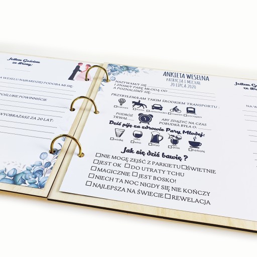 Zatrzymaj magiczne momenty na dłużej! Księga gości w drewnianej okładce z Ankietami pozwala na uchwyceniu Waszych pięknych chwil, dzięki wpisom bliskich, którzy towarzyszyć Wam będą w tym wyjątkowym dniu!