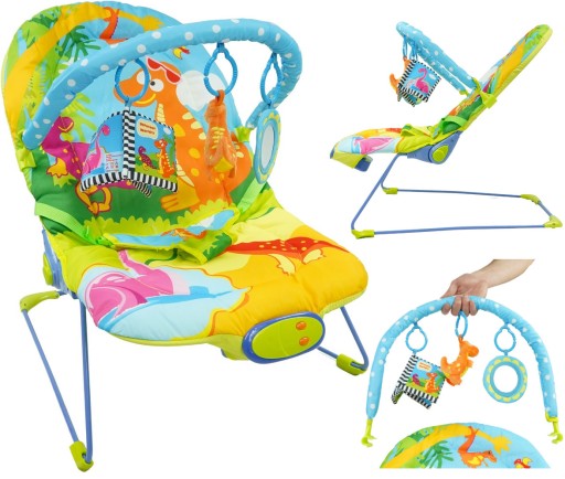 Leżaczek wspomaga rozwój maluszka poprzez zabawę. Wspaniałe wzory pobudzają zmysł wzroku, a zabawki wpływają na rozwój sensoryczny. Leżaczek ma 12 wbudowanych uspokajających melodyjek i 3 poziomy wibracji.