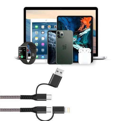 Uniwersalny kabel pleciony o długości 100 cm, wyróżnia się ergonomiczną prostotą i wysoką jakością wykonania. Nasz kabel 4w1 obsługuje system Power Delivery oraz w pełni współpracuje ze wszystkimi telefonami, tabletami, nawigacjami GPS i innymi urządzeniami niezależnie od marki.