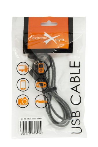 Kabel pleciony 4w1 marki eXtremestyle® został zaprojektowany tak, aby używać go przez wiele lat, wielokrotnie wkładając go w gniazda ładowania.