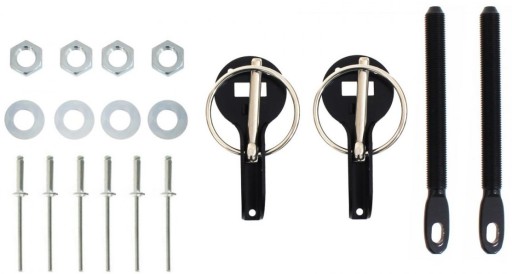 Uniwersalne zapinki do wykonane z aluminium. Mogą być zastosowane do maski, klapy, zderzaka, itp.