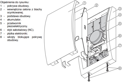 - SENS. i TMP - styk sabotażowy sygnalizatora.