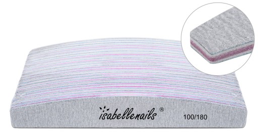 Dwustronny pilnik o gradacji 100/180 średnioziarnisty służy do opracowania naturalnej płytki paznokcia, jak i piłowania i wyrównywania powierzchni paznokci hybrydowych, żelowych oraz progu tipsa.