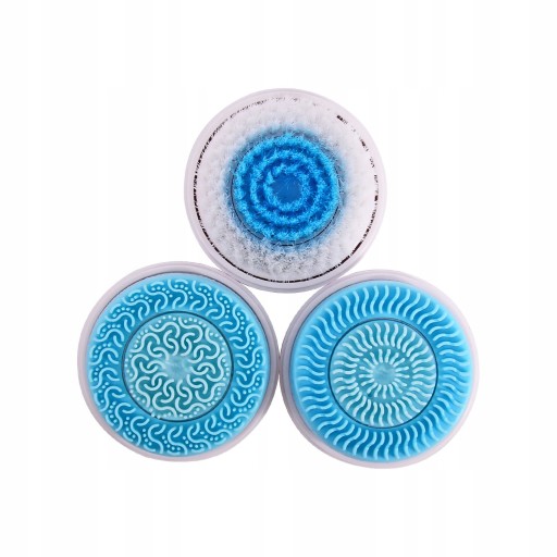 Do szczoteczki dołączone są trzy wymienne nasadki do zamontowania na głowicy. Jedna miękka szczoteczka czyszcząca i dwie silikonowe nakładki do masażu.