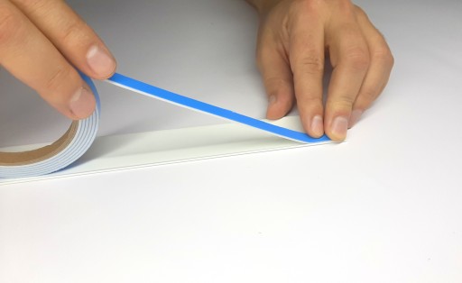 Taśma montażowa, dwustronnie klejąca o wysokiej sile klejenia wykonana jest z białej wysokogatunkowej pianki polietylenowej.