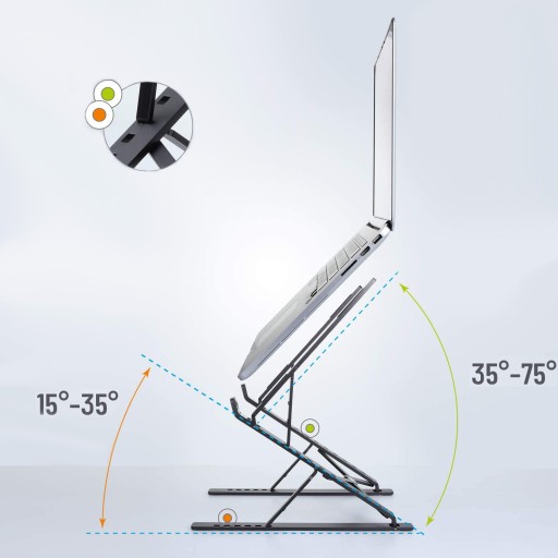 Dzięki wielopoziomowej regulacji, która działa na tak zwany "klik", ustawisz swój laptop dokładnie na tym poziomie na którym będziesz dla Ciebie najlepszy punkt oglądania ekranu.