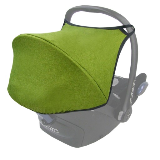 Bardzo ważny element wyposażenia fotelika, który chroni dziecko przed słońcem, wiatrem, deszczem, śniegiem. Wyprodukowana z tkaniny nieprzemakalnej wózkowej imitującej len z wbudowaną fiszbiną nadającą kształt budce.