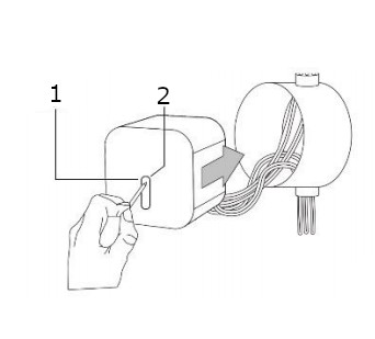 KROK 2: Umieść urządzenie we właściwym położeniu i podłącz przewody instalacji elektrycznej wg schematu. Zabezpiecz przekaźnik w puszce przykręcając go dwiema śrubami (brak w zestawie).