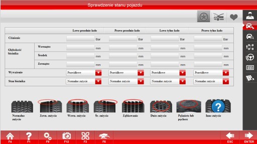 Pozwala na sporządzenie raportu ze stanu pojazdu w momencie przyjęcia go na warsztat. Raport pozwala na sprawdzenie oraz spisanie stanu opon i ich zużycia, stanu zawieszenia itp.