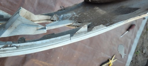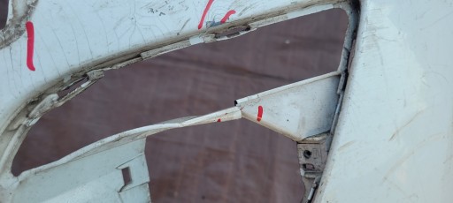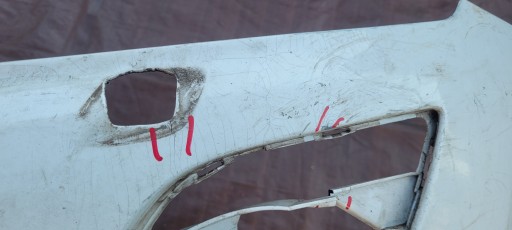 Używany oryginalny zderzak, uszkodzony jak na zdjęciach. Zaczepy całe. Podklejony wewnętrzny odbój.