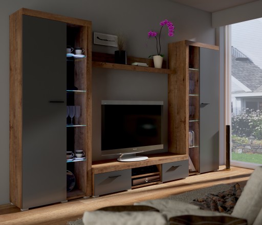 Стенка для гостиной Rumba XL, Дуб Лефкас/Графит