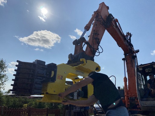 Wibromłot posiada w zestawie głowicę do wbijania. Do zasilania wibromłota konieczna jest linia hydrauliczna zasilająca silnik hydrauliczny.