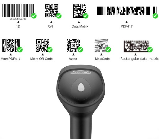 Skanowanie kodów kreskowych i danych 1D & 2D: Skaner może szybko i niezawodnie odczytać kody 1D i 2D, w tym kody QR, datamatrix, PDF417, kod kreskowy jak UPC/EAN, kod 128 itd.