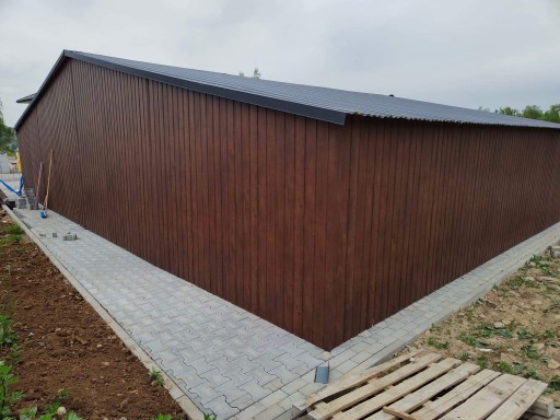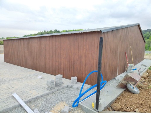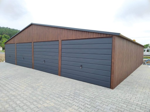 Zewnętrzne poszycie garażu obłożone jest blachą w I gatunku o wysokiej odporności na warunki atmosferyczne.