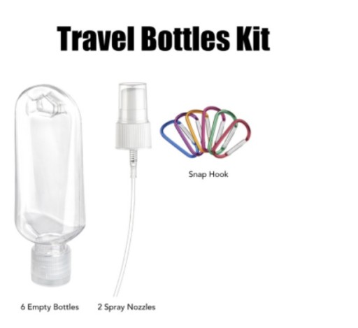 ДОРОЖНЫЕ БУТЫЛКИ С КРАБИНЕРОМ 50мл х 6 шт.