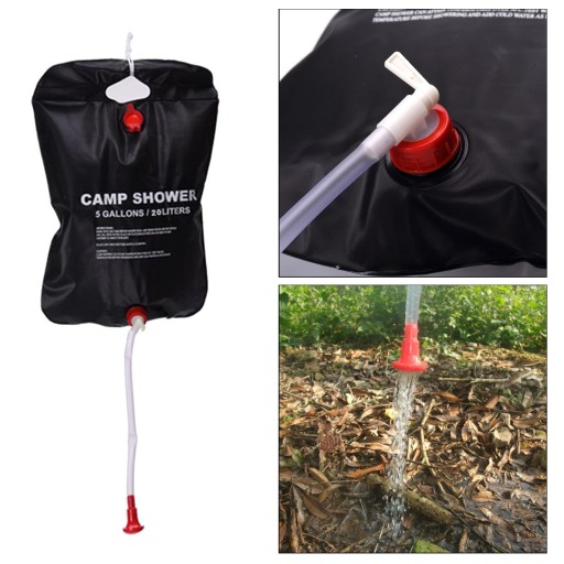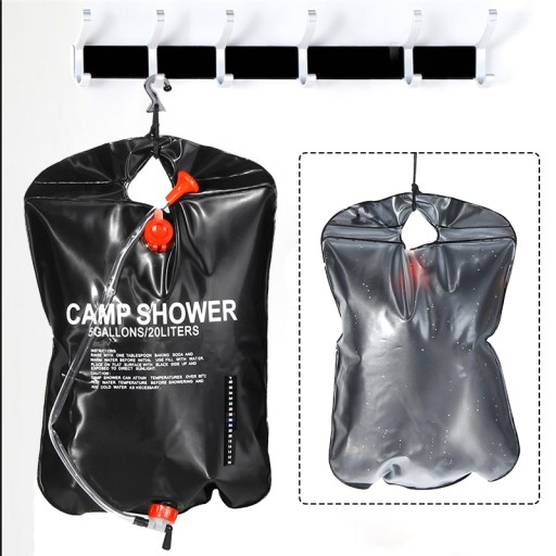 Przenośna torba prysznicowa z odłączanym wężem i głowicą prysznicową pozwala na ogrzewanie wody energią słoneczną. Głowica prysznicowa oferuje łatwy mechanizm włączania / wyłączania z regulowanym przepływem wody. Wykonanie z materiałów przyjaznych dla środowiska i wodoszczelnych. - Mocny uchwyt