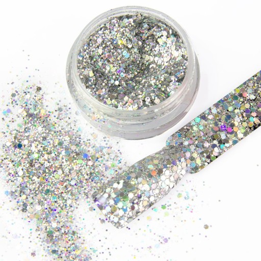 Wysmakowane dopełnienie Twojego manicure w stylu glamour! Biżuteryjny kolor laserowego srebra w holograficznym wydaniu. Idealne dopełnienie stylizacji w każdym kolorze. Wyraź siebie i eksponuj ekspresyjny look! Migoczące dodatki to genialny pomysł na każdą okazję.