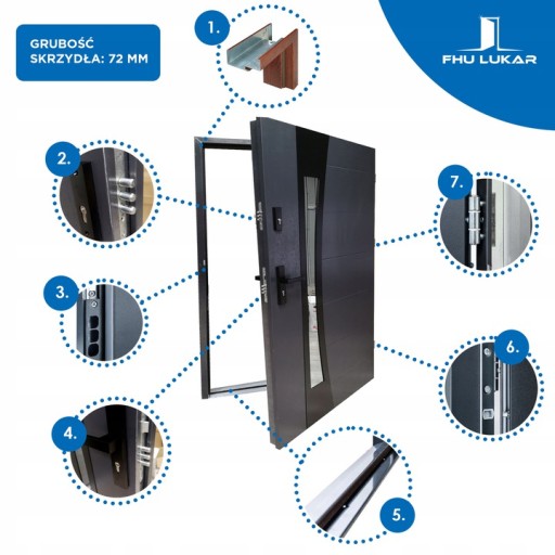 Drzwi metalowe wejściowe zewnętrzne/wewnętrzne (grubość 72)