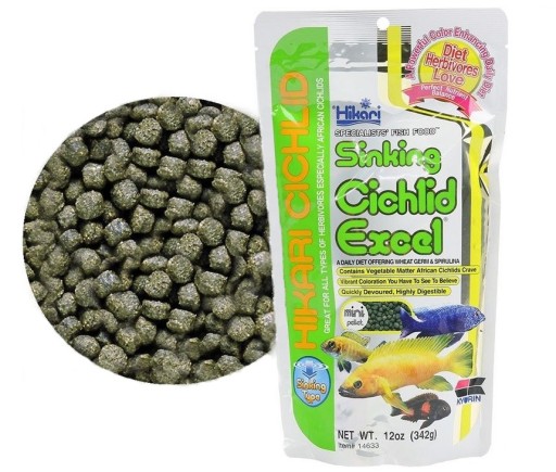 Aukcja dotyczy: Hikari Cichlid Excel Sinking MINI - Karma Tonący Pokarm dla Roślinożernych Pielęgnic i Ryb Tropikalnych 342g: 342g