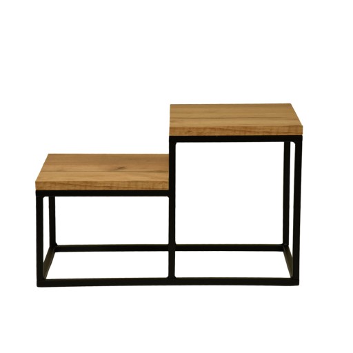 Piękny metalowy podwójny stojak na kwiaty, wykonany ze stalowej konstrukcji z profila 12x12 mm. Blat wykonany jest z płyty meblowej o grubości 18 mm i szerokości 24x24 cm, oklejonej imitacją dąb craft złoty.