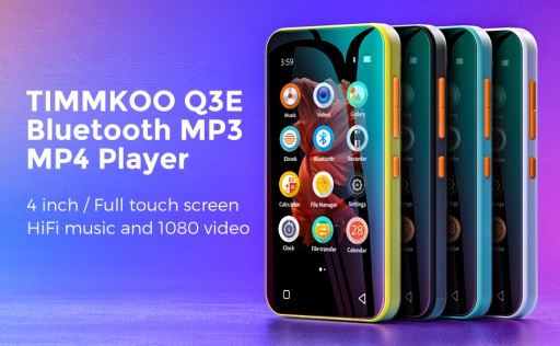 TIMMKOO Odtwarzacz MP3 z Bluetooth, ekran dotykowy 4,0", odtwarzacz MP4 MP3 z głośnikiem, przenośny odtwarzacz HiFi MP3 z Bluetooth, dyktafon, e-book, obsługuje karty TF do 512 GB