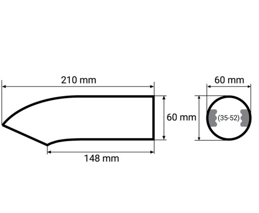 - Średnica montażowa: 43 - 62 mm (średnica oryginalnej rury wydechowej, na którą można zamontować końcówkę)
