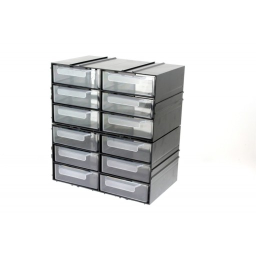 W zależności od modelu, wnętrze modułów jest podzielone tak, że można w nie włożyć dwie, cztery, sześć lub dwanaście szufladek. Dodatkowo najmniejszą szufladkę można podzielić na trzy części z pomocą dodatkowych przegródek (do kupienia oddzielnie).