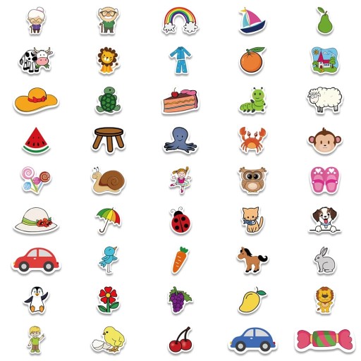 Każda naklejka w zestawie ma inny kształt
