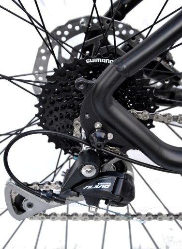 • Osprzęt Shimano (przerzutki, manetki oraz kaseta) gwarantuje płynną pracę napędu