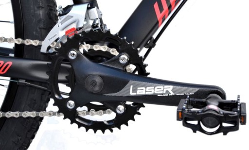 Wyposażony w hamulce hydrauliczne, klamkomanetki, przerzutkę przednią i tylną oraz kasetę 9-rzędową renomowanej firmy SHIMANO. Najpopularniejsza marka sprzedającą części rowerowe. Jest to japońska firma założona w 1921 roku, która do dziś produkuje sprzęt rowerowy najwyższej jakości. Osprzęt Shimano charakteryzuje się lekkością oraz niezwykle szybką zmianą biegów, przerzuca od razu po zmianie w manetce.
