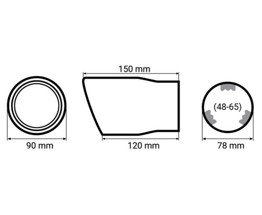 - Średnica montażowa: 48 - 65 mm (średnica oryginalnej rury wydechowej, na którą można zamontować końcówkę)