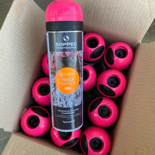 TRACK MARKER firmy Soppec to farba fluorescencyjna w aerozolu przeznaczona do wykonywania oznaczeń na placach budowy oraz do znakowania przy pracach geodezyjnych i pomiarowych. Z jej pomocą wykonamy widoczne, odblaskowe oznaczenia zaznaczając pole pod wykop lub znacząc dokonane pomiary...