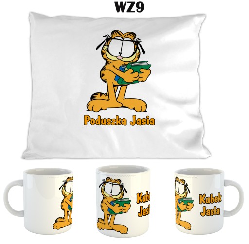 ZESTAW DLA FANA Garfield: Poduszka z poszewką + kubek z własnym IMIENIEM