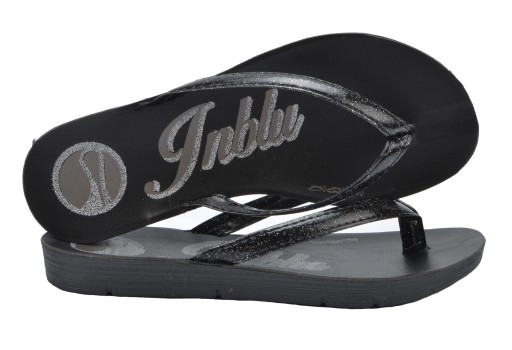 Japonki damskie Inblu w kolorze czarnym z eleganckim paskiem. Obuwie w całości wykonane z najlepszej jakości materiału na grubszej podeszwie amortyzującej wstrząsy.