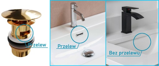 Jeśli kran pozostanie otwarty, gdy korek odpływowy jest zamknięty, woda będzie kierowana do otworu odpływowego, zamiast wylewać się z umywalki na podłogę. Przelew umożliwia szybsze odpływanie wody z umywalki poprzez wprowadzenie powietrza do układu.