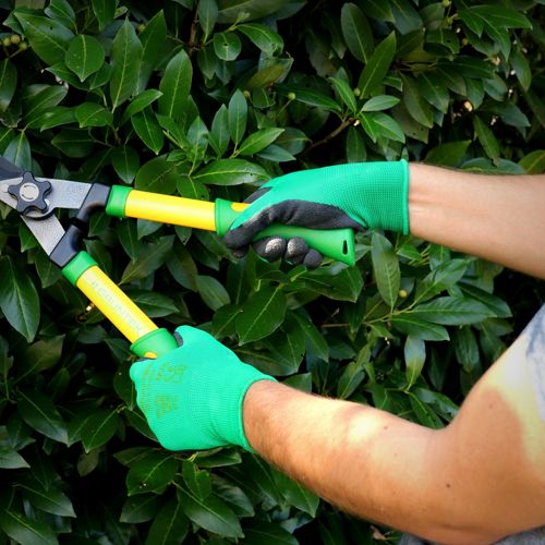 - 5 par profesjonalnych rękawic ogrodowych. Materiał: 100% włókno poliestrowe z hydrofobową powłoką LATEX
