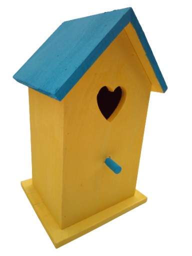 Oferowana budka jest wykonana z drewna, możesz ją samodzielnie udekorować wg własnego uznania, pomalować nietoksycznymi farbami bądź przypiąć naturalne ozdoby.