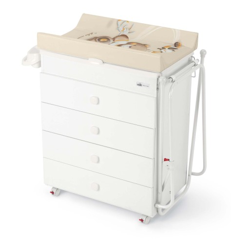 Dodatkowy stelaż do zamontowania z boku komody ASIA pozwala mamie na wygodne i bezpieczne położenie dziecka na przewijaku po wyjęciu z wanienki