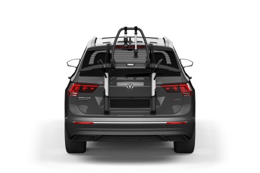 - Łatwe mocowanie rowerów przy użyciu regulowanych/odłączanych ramion oraz dzięki gałkom Thule AcuTight, które kliknięciem sygnalizują osiągnięcie optymalnej siły dokręcenia