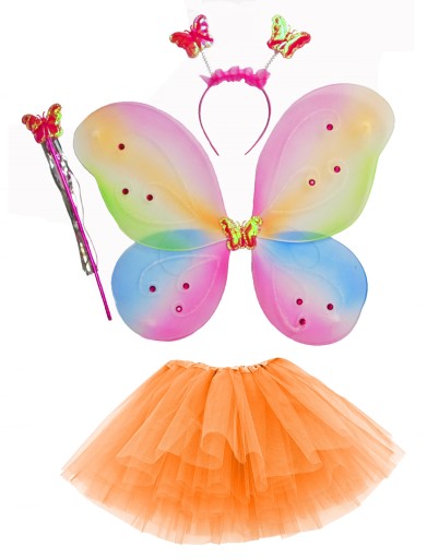 4 częściowy kostium - spódniczka tiulowa ( bez podszewki - do legginsów lub kryjących rajstop ) + opaska + różdżka + skrzydełka